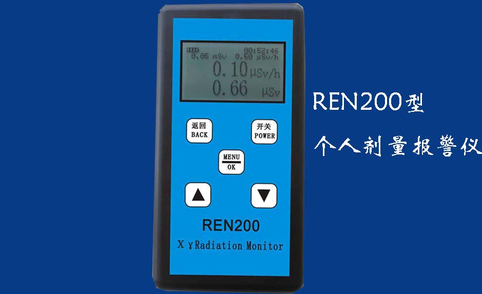 REN200A型X、γ輻射個人劑量當量HP(10)監測儀(簡稱:個人劑量報警儀)內置高靈敏度蓋格計數管為探測器,主要用來監測各種放射性工作場所的X、γ以及硬β射線的輻射,具有響應快,測量范圍寬的特點。能顯示工作場所的劑量當量率和累積劑量,更換電池時,日期及累積數據能永久保存。可選配RenRiPersonal個人劑量管理軟件,該軟件可存儲多個人的歷史數據,能記錄日累積、月累積、年累積、輻照時長、計算平均劑量率、扣除或不扣除本底輻射,且以文字和圖譜的方式展現數據。廣泛應用于核電站、加速器、鋼鐵、化工、同位素應用、工業X、γ無損探傷、放射醫療、鈷源治療、γ輻照、放射性實驗室、核設施周圍環境監測等領域中的